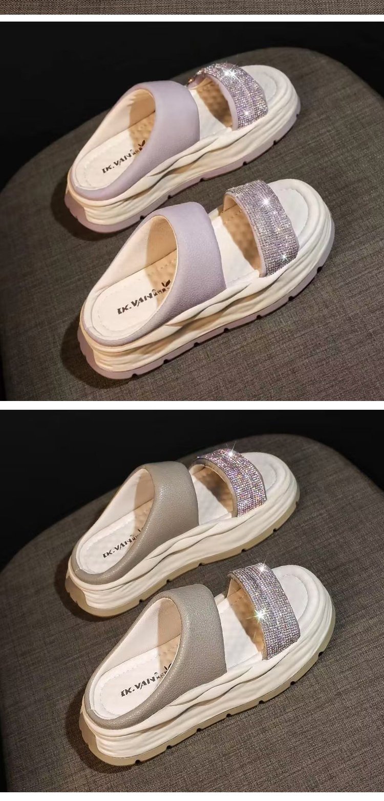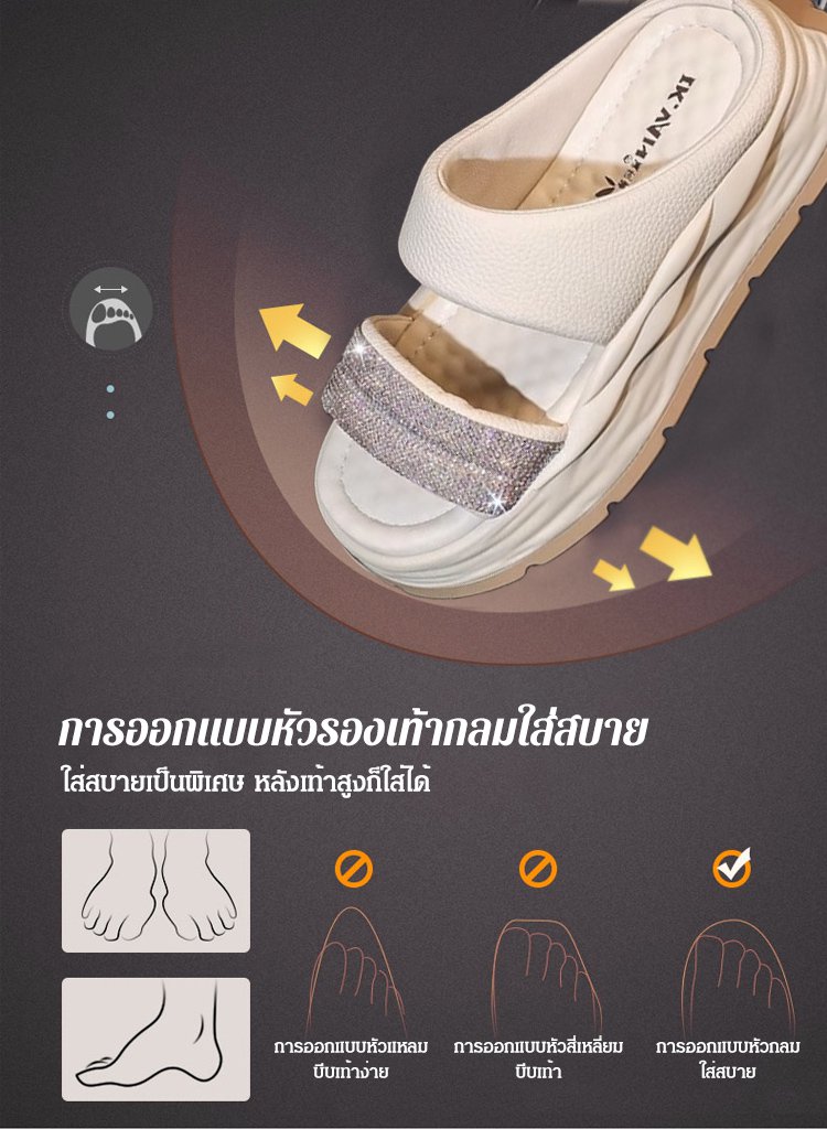 รองเท้าแตะเพิ่มความสูงติดเพชรกระพริบ